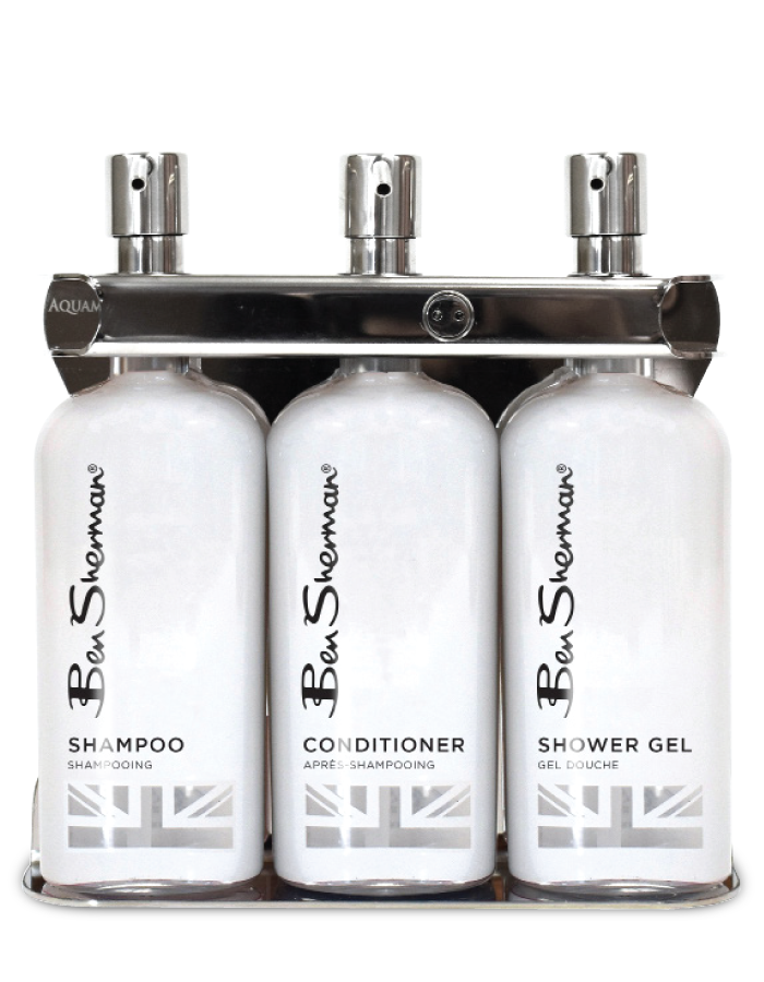 The Aquamenities dispenser offers a tamper-proof alternative to traditional amenities, with stainless steel pump caps locked with a stainless stell fasting mechanism. They can be custom designed to your properties' specifications and branding, and they are easily refillable by staff.